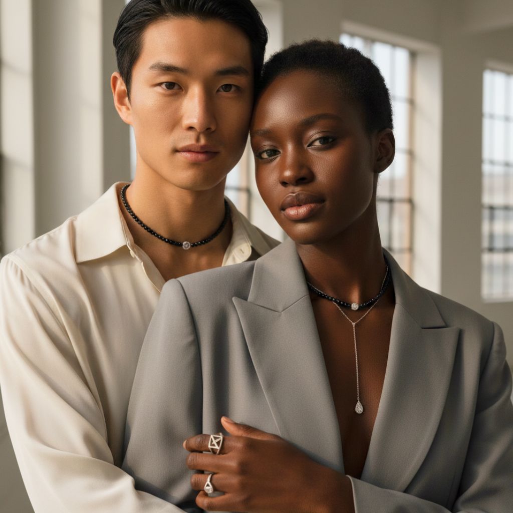 We designs custom-made jewelry that transcends gender and tradition, crafted to express authentic connection and personal essence. Each piece reflects a balance of strength, unity, design innovation.