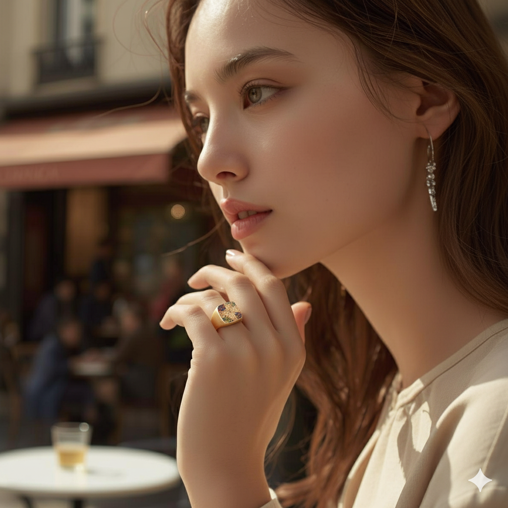 Signet Multicolor Diamonds Red Pink Yellow Green